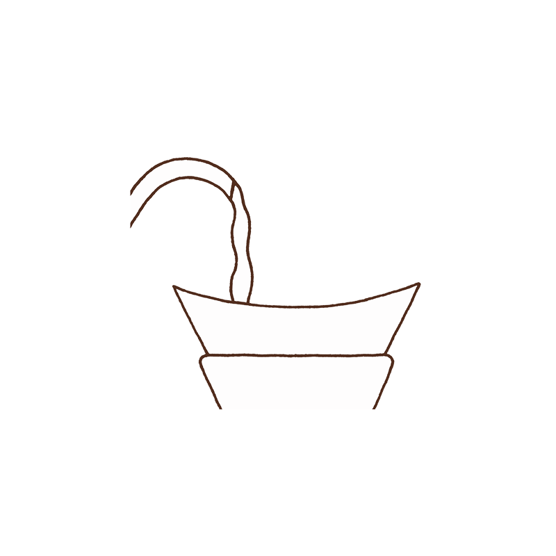 Begin pouring a steady, even stream of hot water over the grounds in a circular motion. Continue slowly pouring until your scale displays ‘630 grams.’ Avoid pouring water directly onto the filter. When all water has dripped through the filter, the volume of coffee should be level with the raised glass button on the side of the Chemex pot.