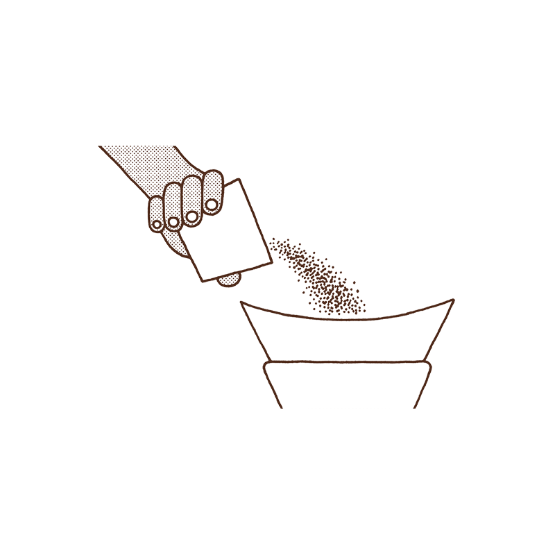 Allow your water to reach a boil, and then wait 45-60 seconds. Start your timer and pour 60 grams of brewing water into the center of the bed of grounds. Let stand for 45 seconds, allowing the coffee to absorb the water.