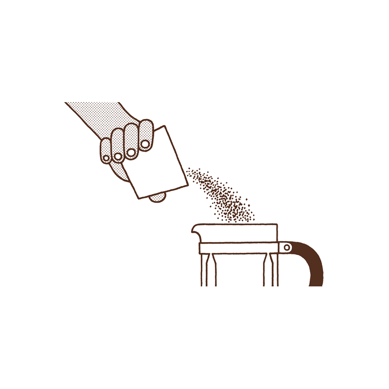 Pour the ground coffee into the press pot, giving a gentle shake to settle the grounds. Place the French Press onto your scale and tare to ‘0 grams.’